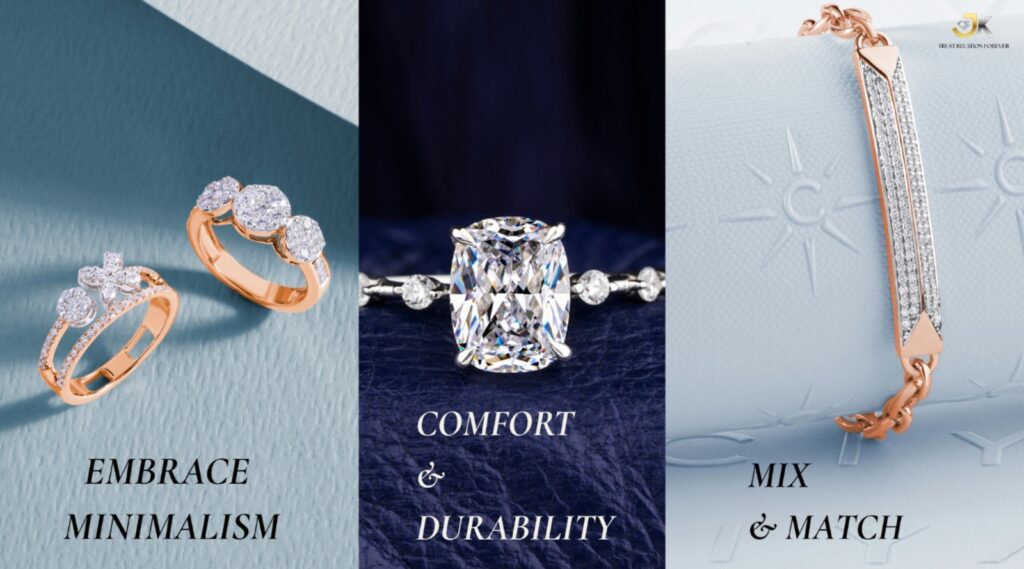 - Casual Chic: Pair your favorite jeans and a crisp white shirt with diamond studs, a delicate pendant, and a thin diamond band.