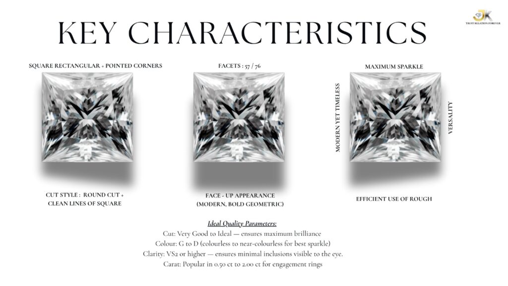 Popularized in the 1980s, the princess cut maintains a strong following due to its clean, angular aesthetic that suits contemporary styles. - Efficient Use of Rough