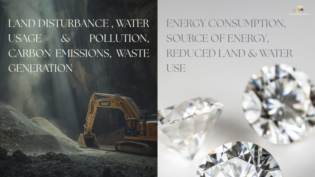 • Reduced Land & Water Use: Emphasize that lab-grown diamonds require significantly less land and water compared to mining.